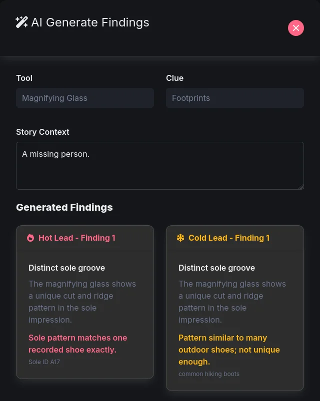 It’s a tool targeted towards educators to help build interactive mystery games (in the style of escape/clue games). The idea is you start with some mystery story where there’s an array of suspects.